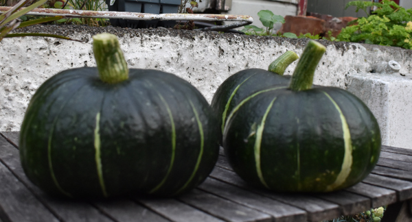 About 6 weeks ago I noticed that a pumpkin had self seeded in our garden. At first I wasn’t sure if it was a pumpkin or a courgette but time has shown that it is indeed a pumpkin and since we only eat one type, it had to be a Buttercup. It has taken over the garden and we have had 3 pumpkins from it so far and there are at least 6 more on there that will hopefully be ready soon. Great timing for winter, I see lots of pumpkin soup in my future!