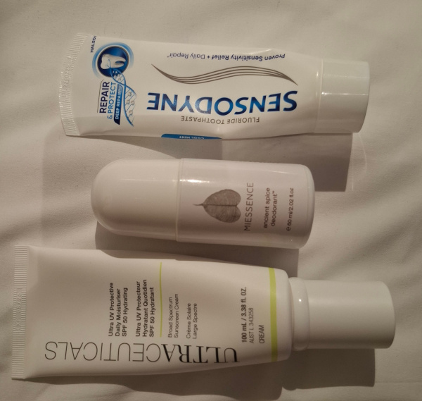 - Toilet bag (deodorant, moisturiser, toothpaste, hairbrush, hair tie, shower cap, toothbrush, floss)